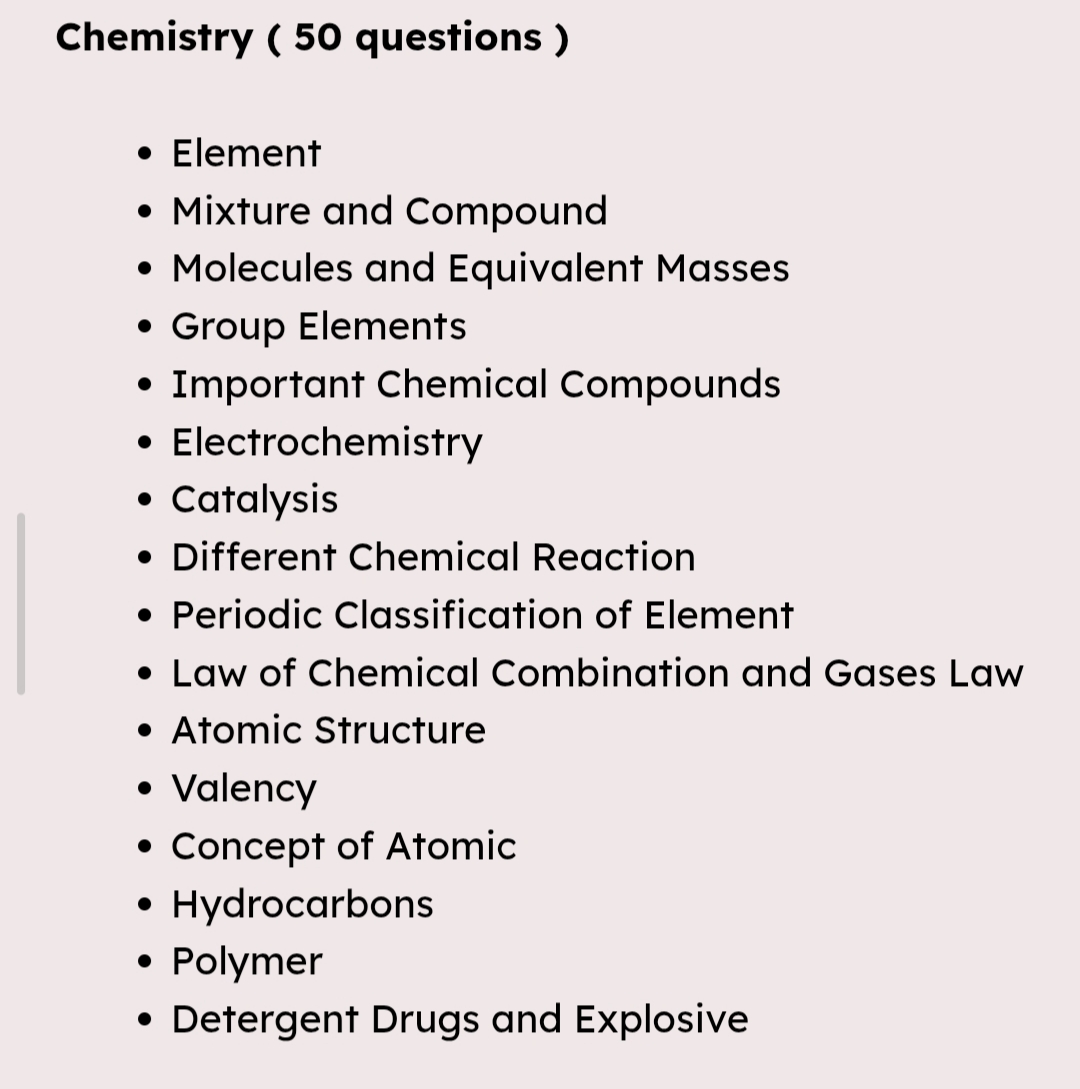 | Chemistry | 50 | 50 |