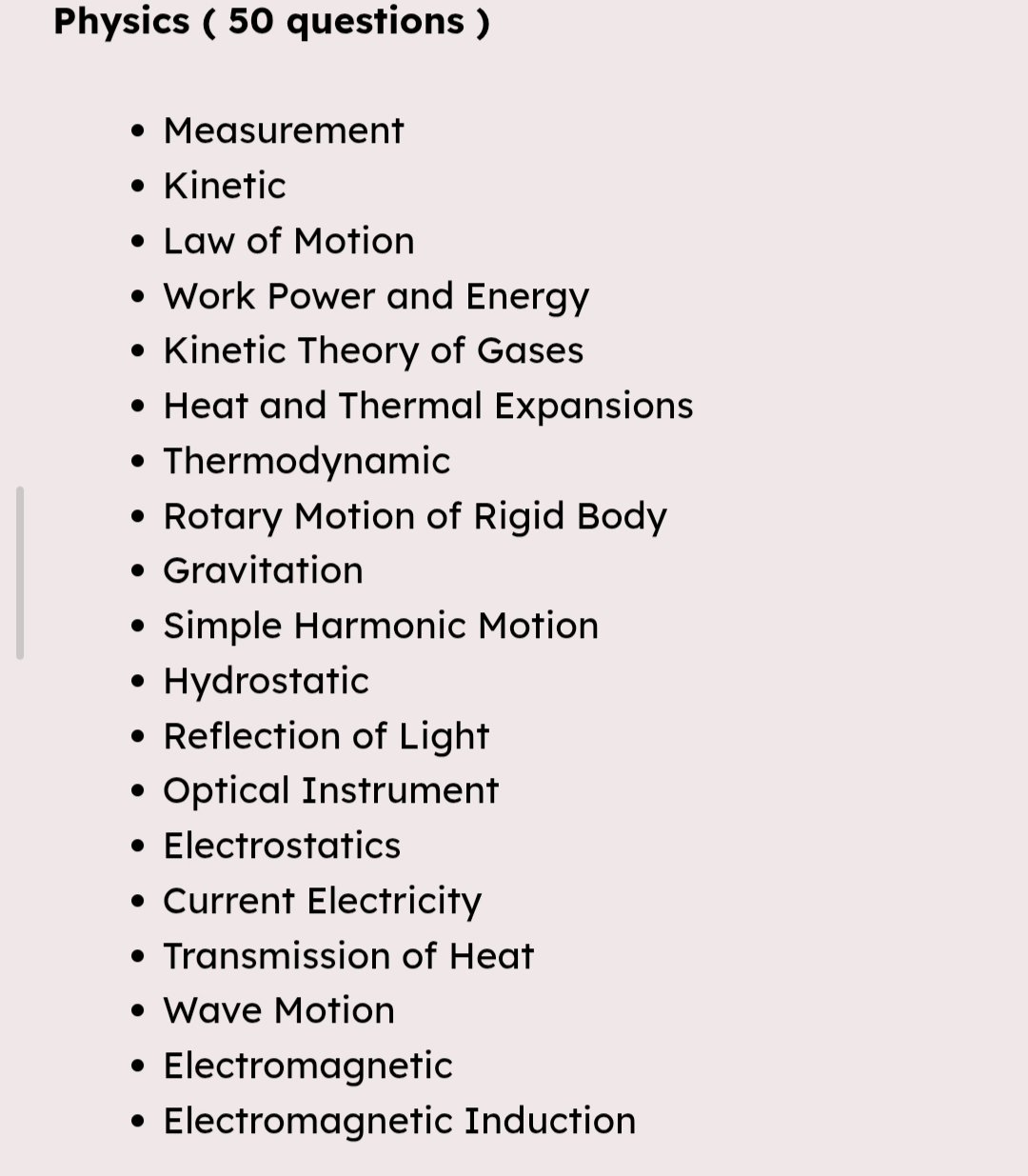 | Physics | 50 | 50 |